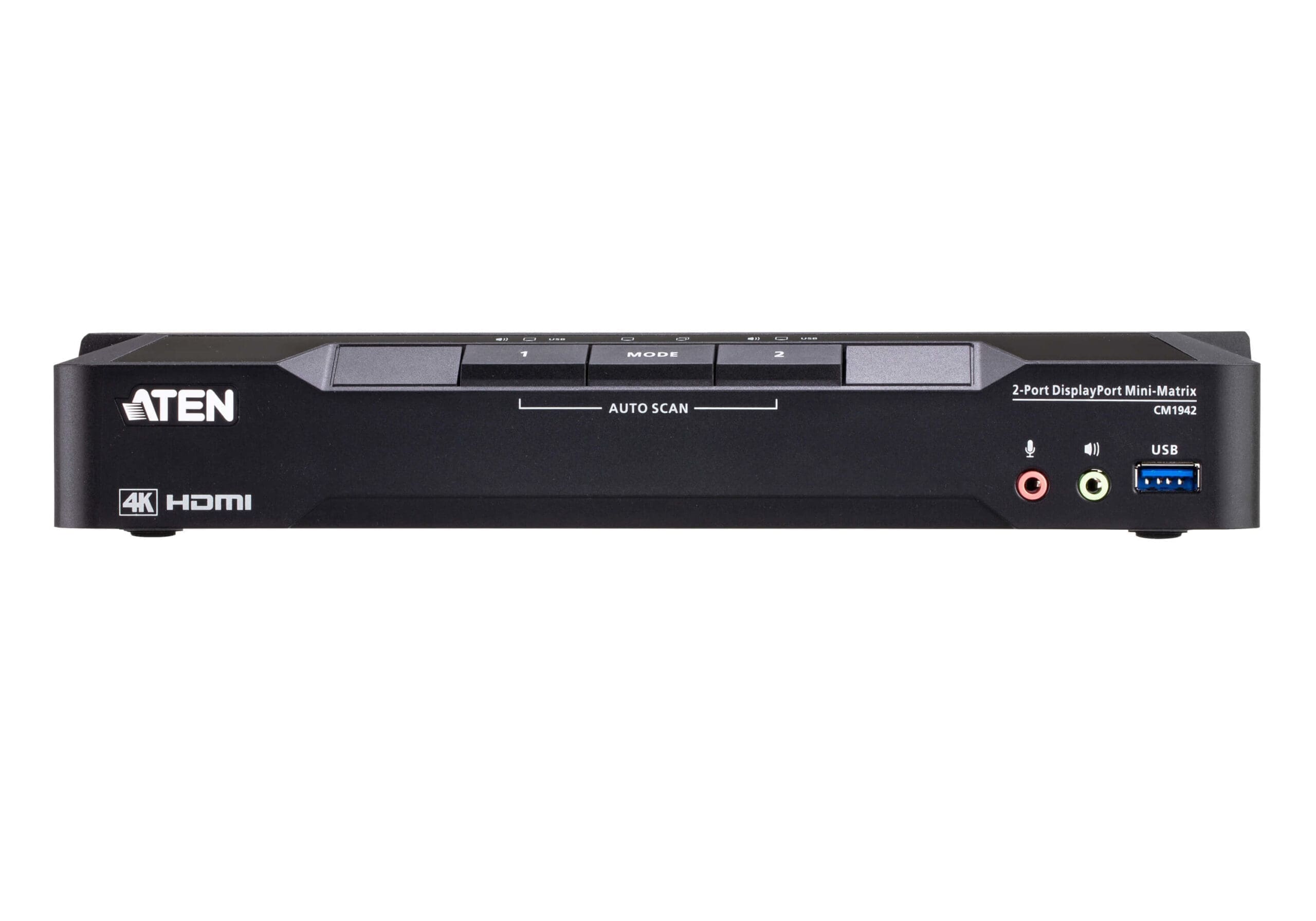 The CM1942 empowers your desktop operations with connectivity to two DisplayPort computers and two HDMI displays, providing a remarkable user experience with exceptional 4K audiovisual enhancement.