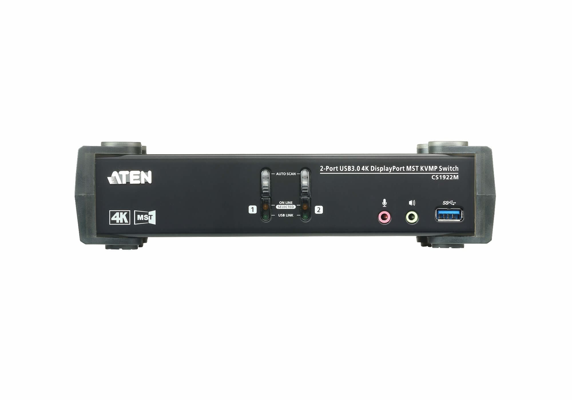 Incorporating the latest Multi-Stream Transport (MST) technology, the CS1922M 2-Port USB 3.0 4K DisplayPort MST KVMP™ Switch is the world’s first DisplayPort KVM switch with a built-in MST hub. The CS1922M enables users to adopt two console displays from a single DisplayPort 1.2 video source, providing an extended desktop mode and splitter mode at resolutions up to 4K for multitasking across two displays while reducing bulky cable connections.