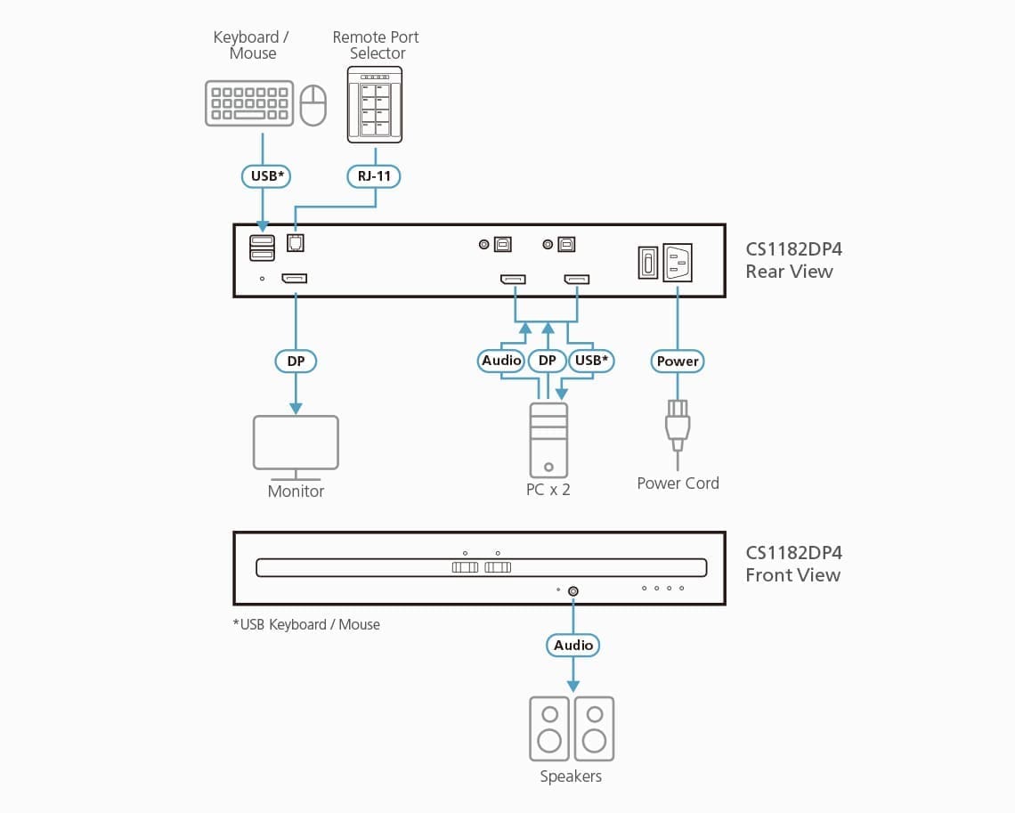 ATEN PSD PP v4.0 Secure KVM Switch CS1182DP4 provides isolation between computer sources and peripherals while sharing a single keyboard, mouse, monitor, and speaker set between connected computers of various security classifications. Compliance with PSD PP v4.0 ensures peripheral sharing capabilities provide maximum user data security when switching port focus, preventing unauthorized data flows or leakage between connected sources. Key protections include isolation and unidirectional data flow, restricted peripheral connectivity and filtering, user data protection, configurable device filtration and management, strict audio filtration, and always-on tamper-proof design, keeping sensitive assets isolated and providing advanced security and a user friendly design for instantly secure deployment.