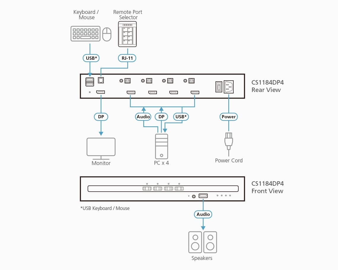 Note: 1. The Remote Port Selector is not supplied in the package and requires a separate purchase.
