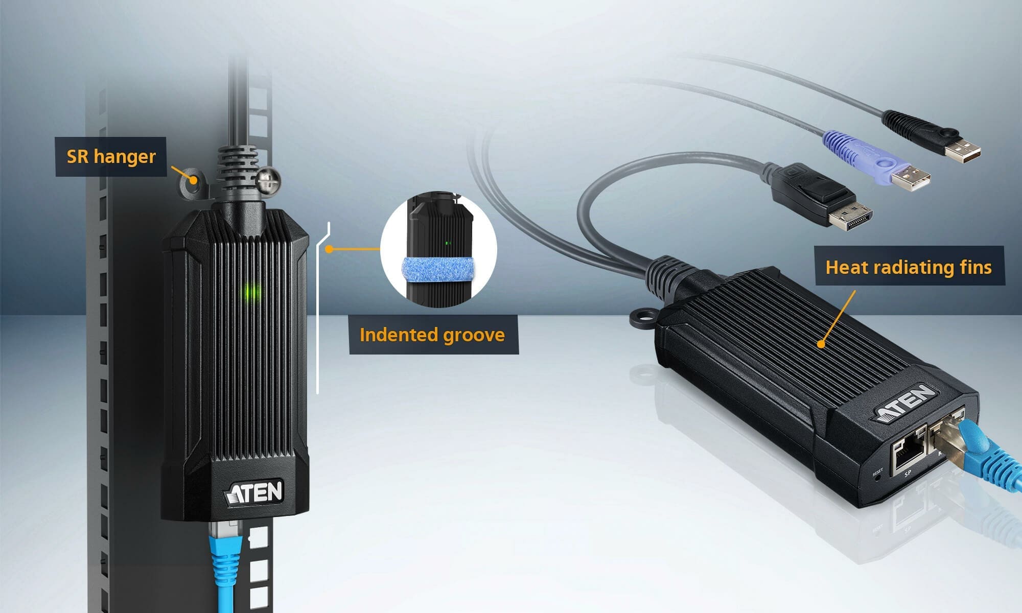 The KVM DigiProcessor, available in VGA, DVI, HDMI and DisplayPort connectivity, is 25% lighter in weight and ¼ the size of comparable products for optimized in-rack server connections. The anti-bending SR hanger allows for flexible yet stable in-rack installation, while the indented groove on both sides is intended to prevent the device from falling loose when tied onto the rack. In addition, the heat radiating fins are purposed to boost airflow efficiency to ensure system reliability.