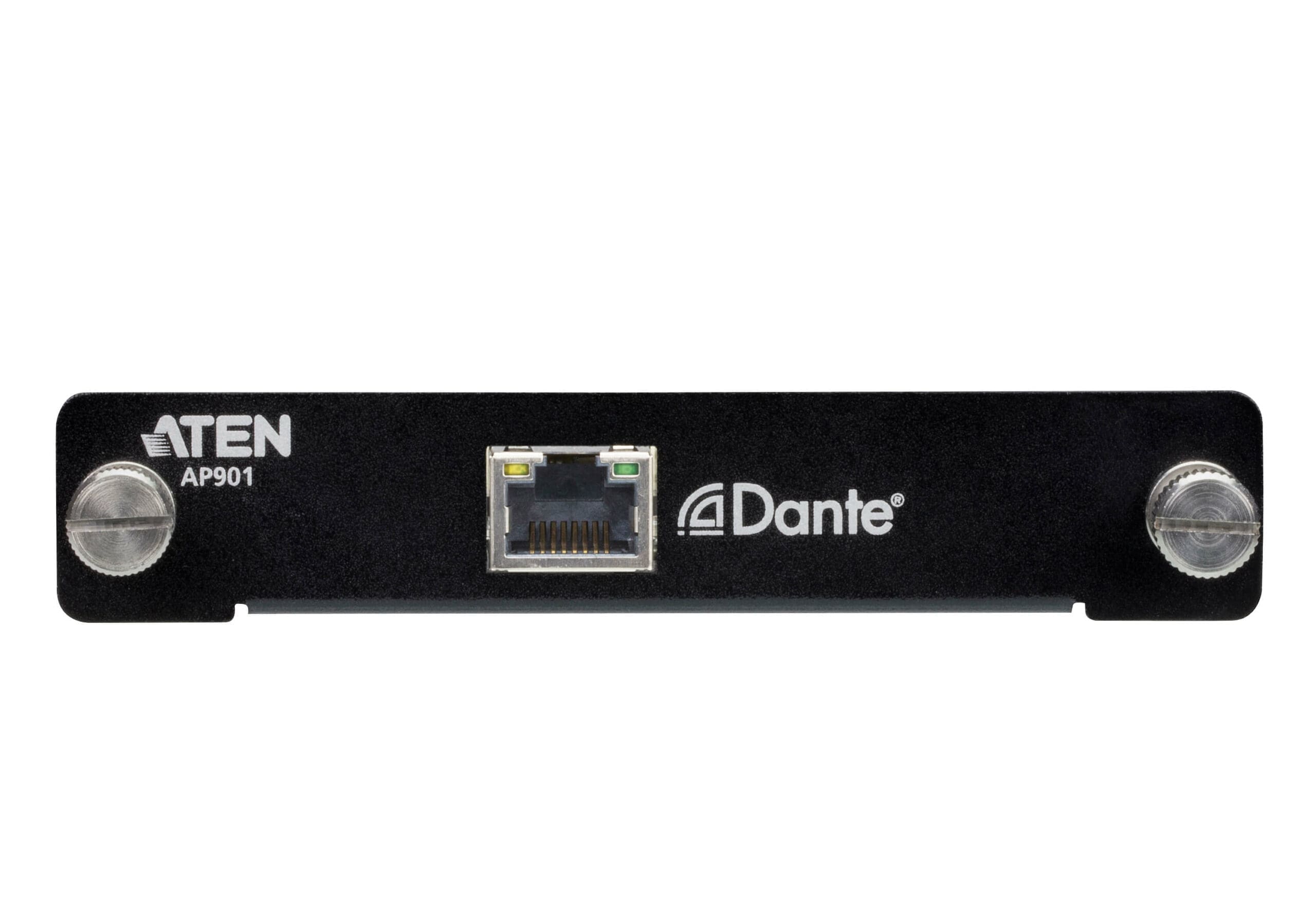 Dedicated for use with ATEN’s AP DSP Power Amplifier series, the AP901 allows the AP amplifiers to receive 2 inputs of high-quality, low-latency digital audio via the Dante® AoIP solution. The range of Dantebased applications are broadened thanks to the easy integration with various Dante-enabled equipment, from digital mixers, DSPs, and more, brought by the AP901 working in conjunction with the AP amplifiers. The AP901 delivers industry standard audio quality at 24-bit depth and supports sampling rates of 44.1 / 48 kHz,ensuring excellent audio integrity while fulfilling different environment needs. The installation into the AP power amplifiers’ expansion slot is easy. With all the Danteenabled devices being manageable and configurable fully through the Dante Controller software, the utilization of AP901 helps further enhance flexibility and streamline workflows in any Dante network infrastructure including broadcasting, recording, and other professional audio distribution scenarios. Furthermore, with just one Ethernet cable and some simple mouse clicks, ATEN’s Dante networking technology eliminates the need for traditional analog cables, expanding Dante network coverage and distributing AV signals across multiple locations at once.