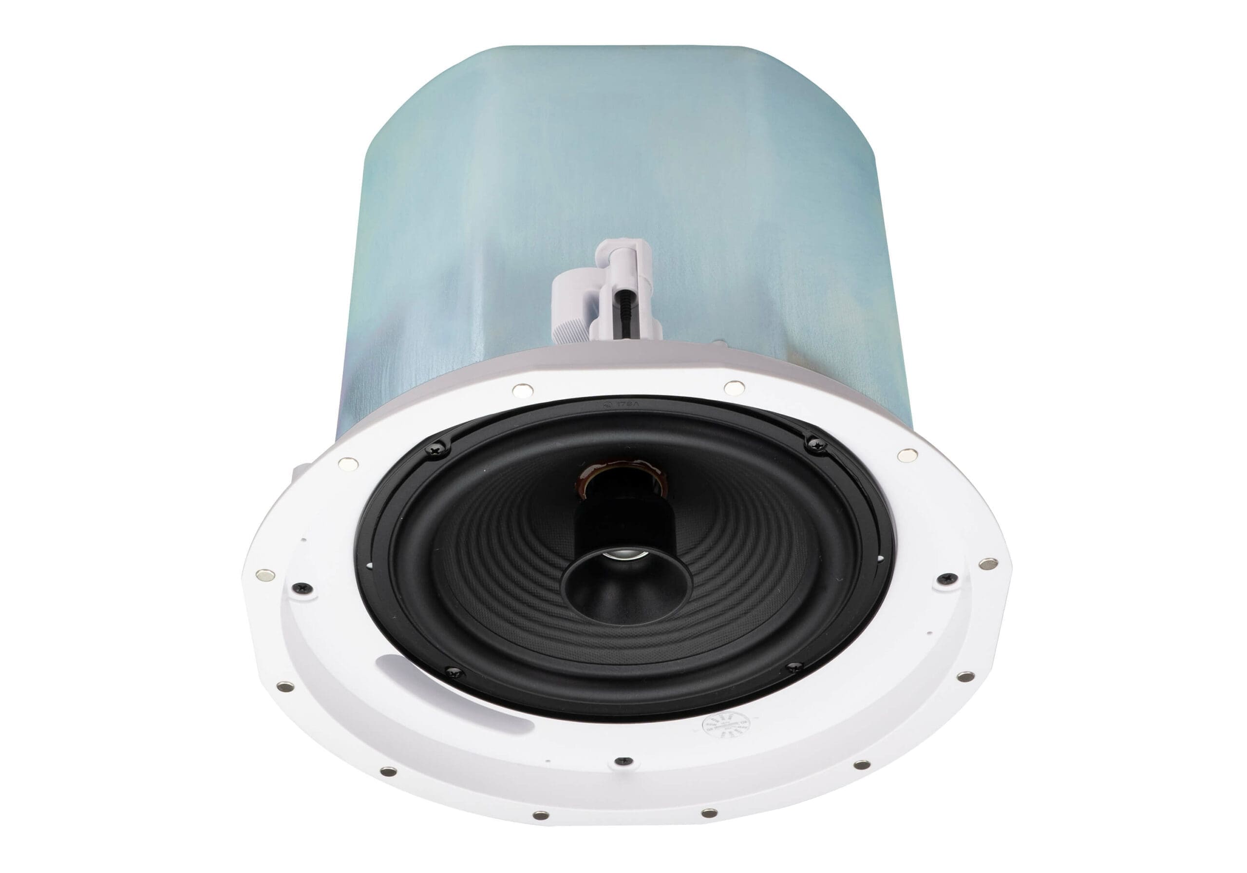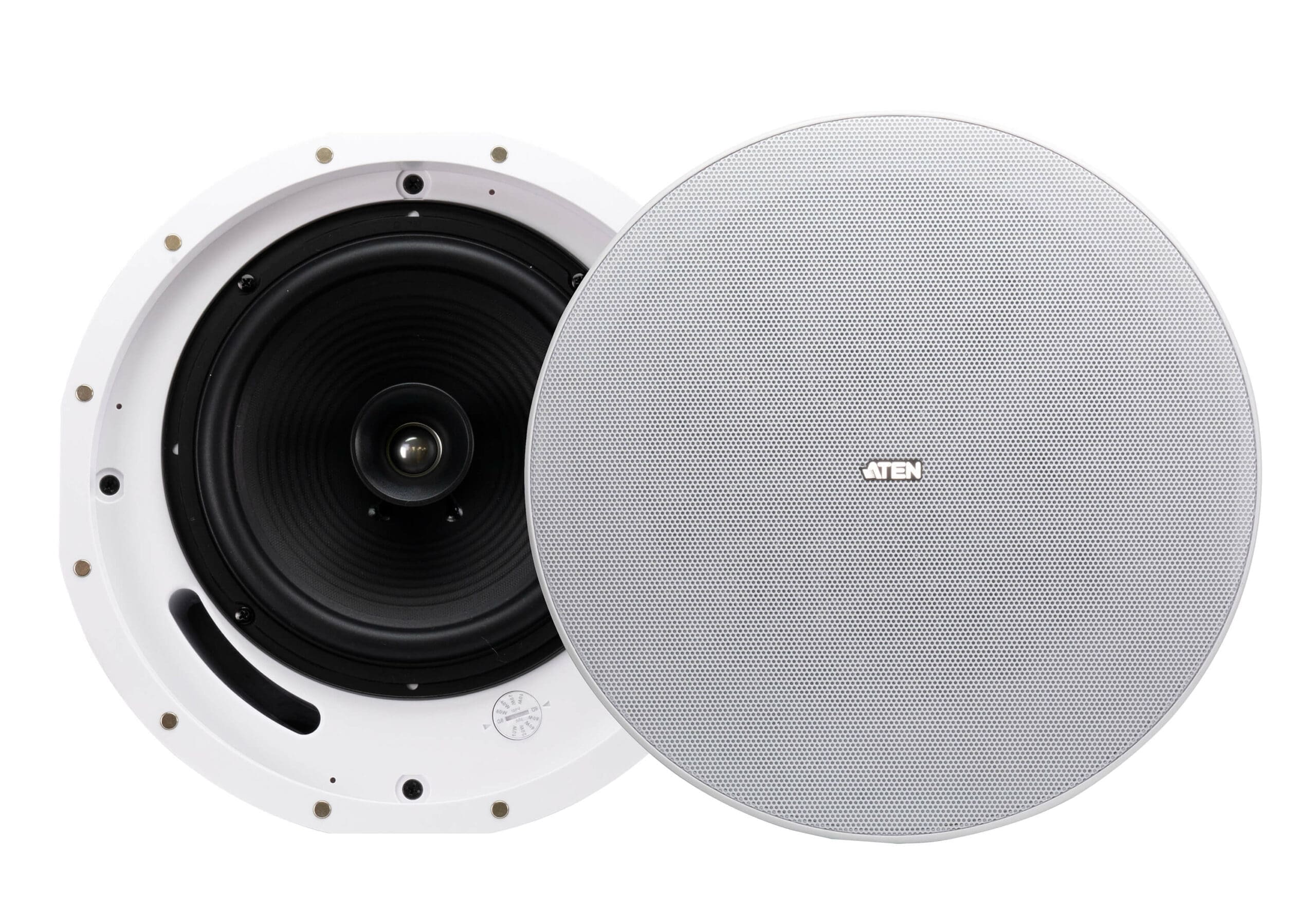 The AS108 comes in a pair of 8″ coaxial 2-way ceiling loudspeakers that deliver decent sonic performance. Each speaker ships with a 8″ woofer, 20 mm dome tweeter, and 80W RMS, 160W peak (8Ω) power handling capability. Excellent and consistent sound quality is ensured by taking advantages of its 65 – 20 kHz bandwidth and wide coverage, allowing less speakers used to cover the listening area to lower the cost of the system installed.