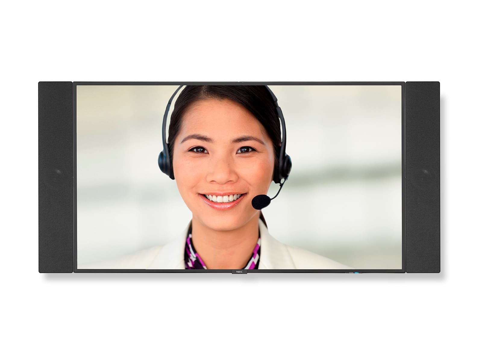 The side-mounted speaker system delivers superior sound quality seamlessly combined with the 75″ Large Format Displays MultiSync C751Q, V754Q and P754Q. The result is sound and vision excellence. The powerful audio performance makes the SP-554QSM a perfect fit for music and movie playback and also allows voice to be received with clarity from anywhere in the room.