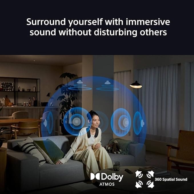 BRAVIA Theatre U is a personal speaker that immerses you in movies without disturbing others. Combine our sleek wireless neckband speaker with Dolby Atmos® and a compatible BRAVIA for immersive 360 Spatial Sound, and enjoy powerful soundtracks and crystal-clear dialogue. You can even pair with another BRAVIA Theatre U to share the experience.