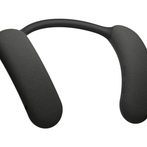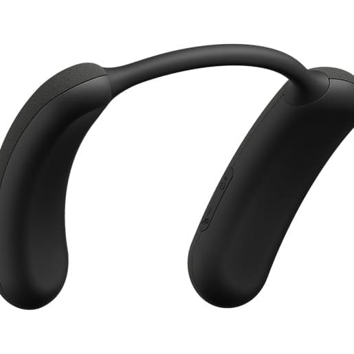 Lightweight and flexible personal wearable speaker with 360 Spatial Sound Mapping, X-Balanced Speaker Unit, IPX4 splash-proof design, Speaker Add function, up to 12 hours battery life and wired audio connection with cable supplied.