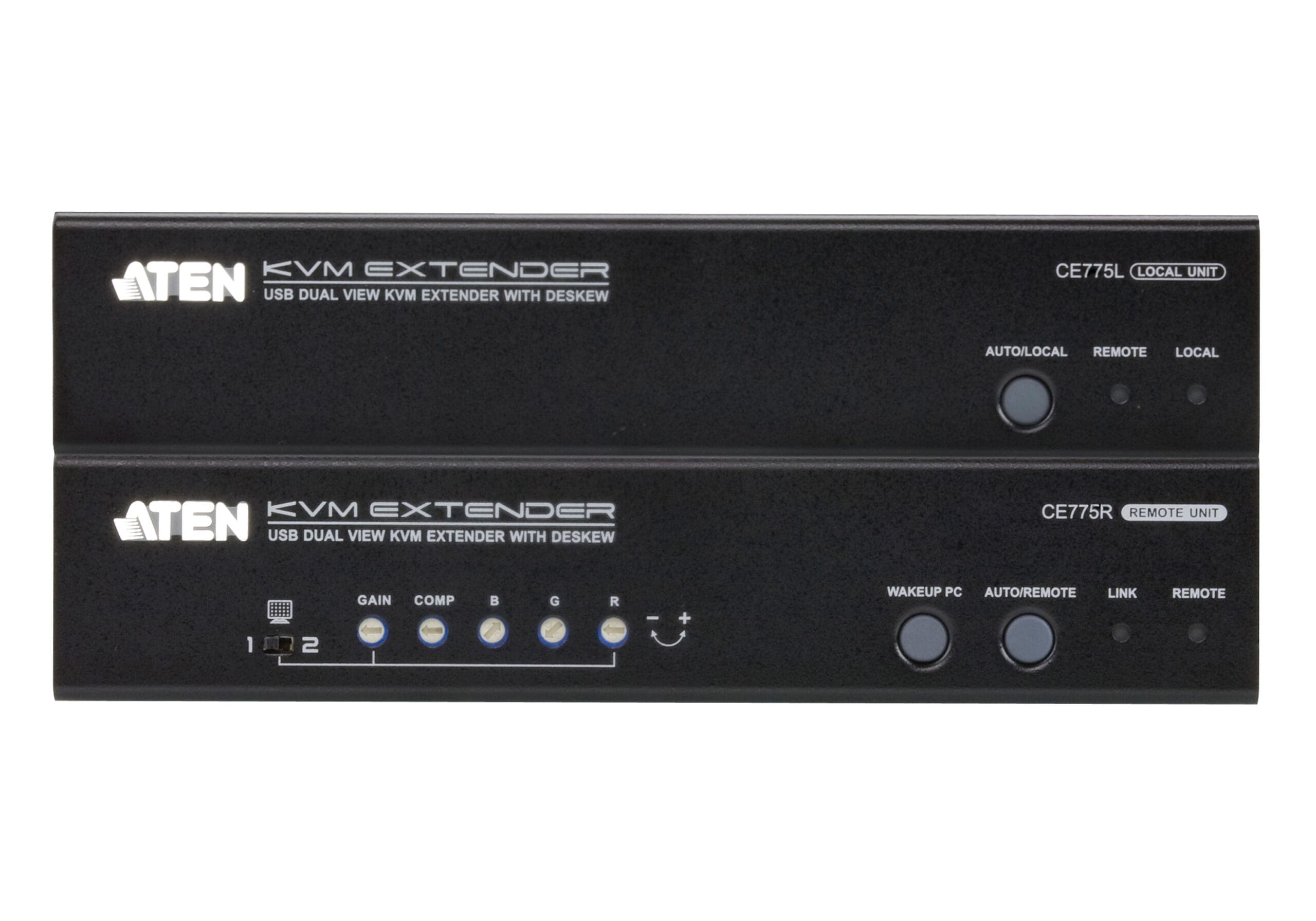 ATEN CE775 Dual View KVM Extenders with Deskew function allows access to a computer system from a remote Dual View console up to 300 m away. The dual view function provides support for two displays, allowing the video output to seamlessly display on two monitors. Its advanced PC Wake – Up feature that allows you simply uses a pushbutton from the remote dual view console to wake a PC at the local site via RS-232, no need to go to the local site to wake up the PC. It eliminates the need for traveling back and forth between the local computer and remote console, effi cient and flexible.