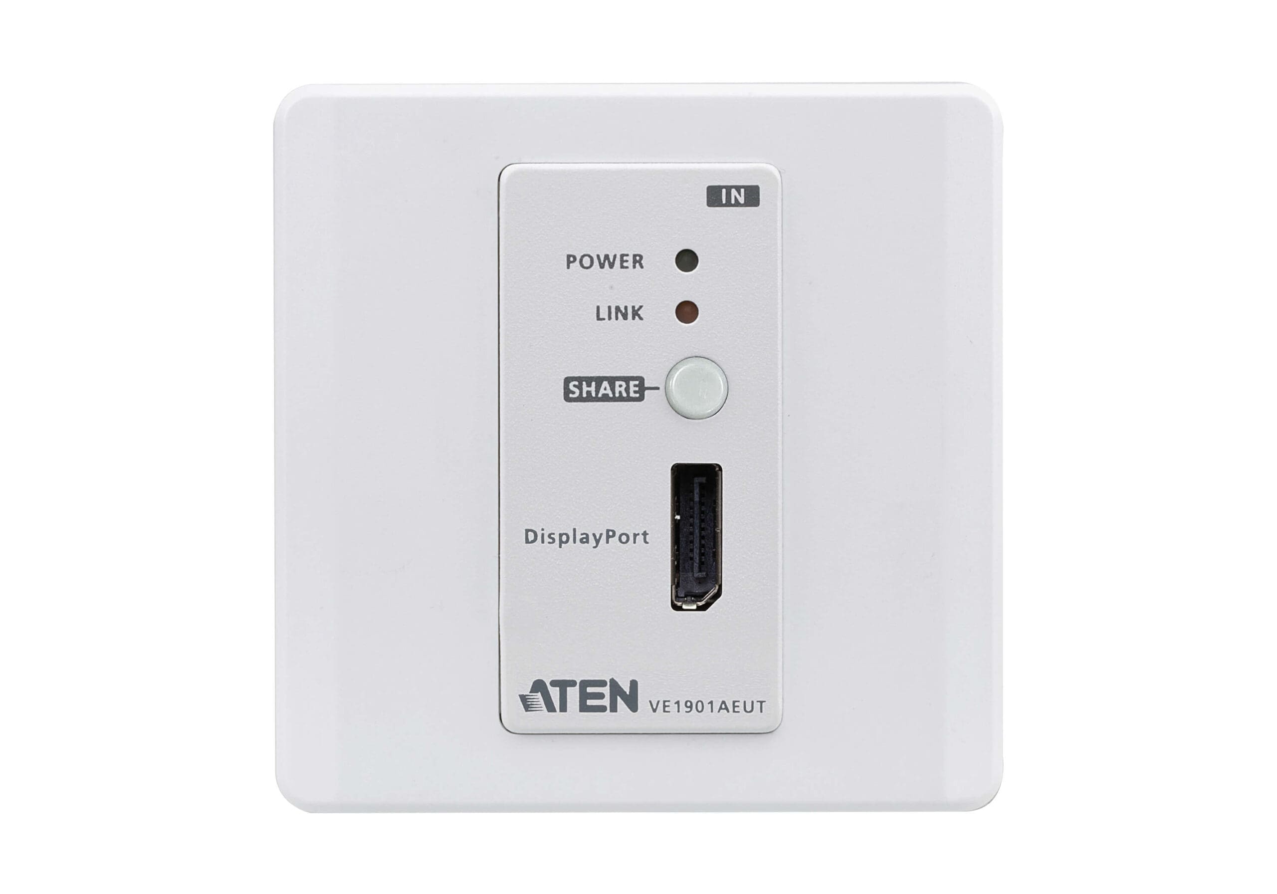 With the share function, the VE1901AEUT can remotely switch source when connecting to a compatible receiver, e.g., VP1421, bringing users for more convenient AV extension. This compact transmitter provides a neat and simple installation on walls or tables, enabling users to elegantly immerse their AV applications into any environment. Therefore, the VE1901AEUT is ideal for use in meeting rooms, digital educational environments or any application requiring stable high-quality transmission and effortless installation.