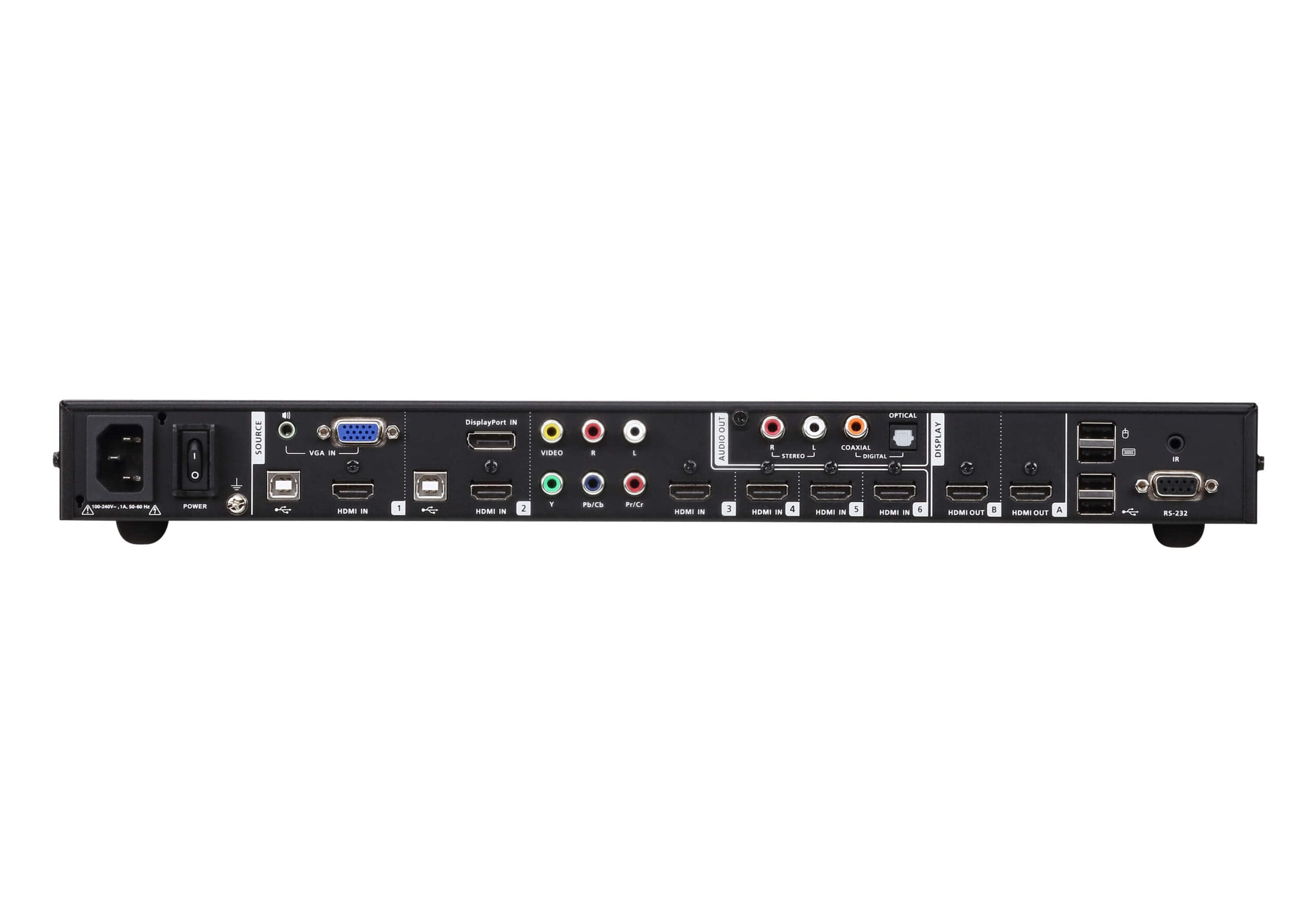 The ATEN VP1920 is a 3-in-1 presentation switch that integrates a video matrix switch, an audio processor, and analog-to-digital converter functions. With nine multi-format inputs to two HDMI 4K outputs, it is designed to boost the efficiency and impact of professional presentations.