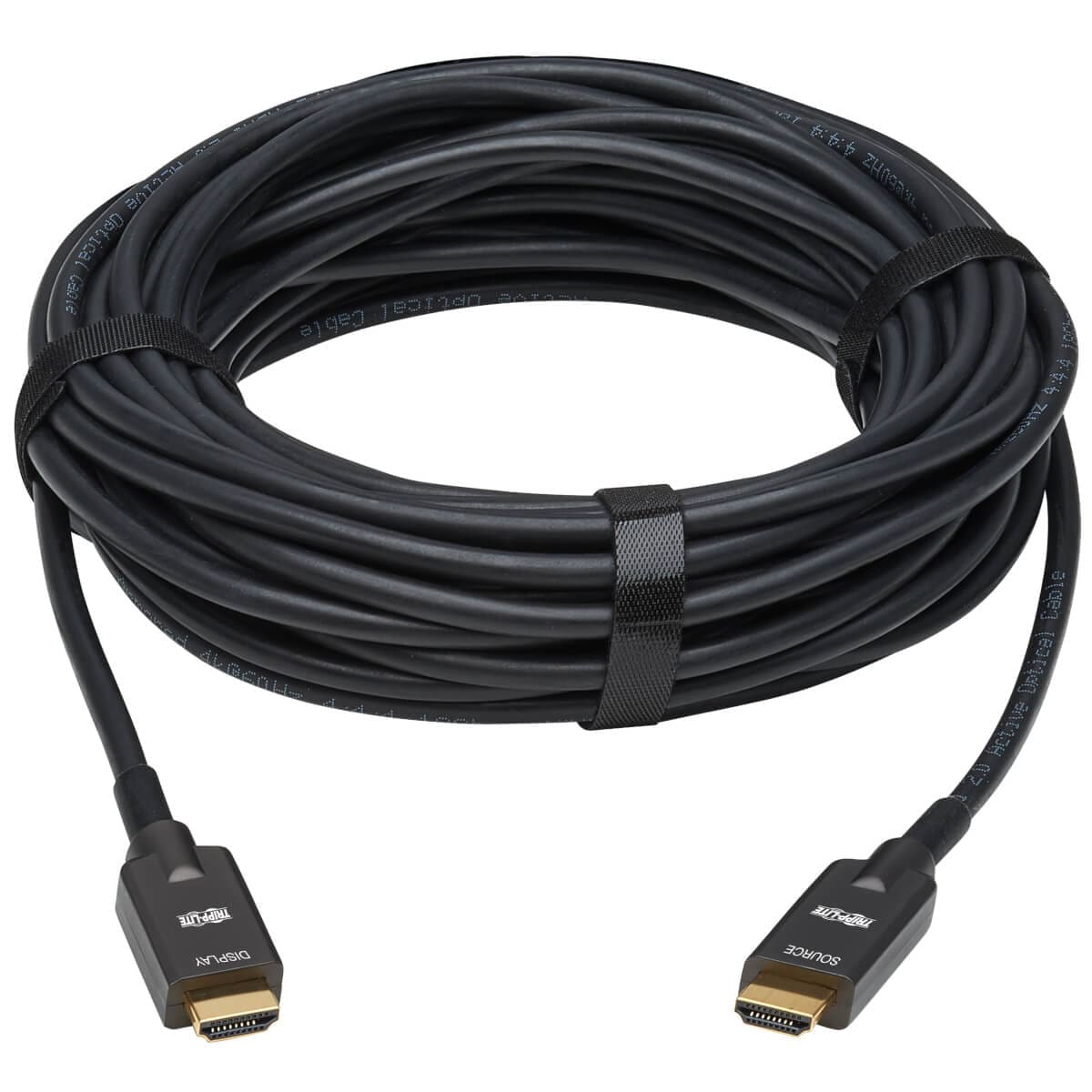 Because the fiber cable is slimmer and more flexible than standard copper HDMI cables, the P568FA-20M is easier to install around corners and in hard-to-reach spaces behind equipment. It draws power from the connected device, so no external power supply is needed to transmit the HDMI signal across the longer distances unique to fiber optic cabling. Note