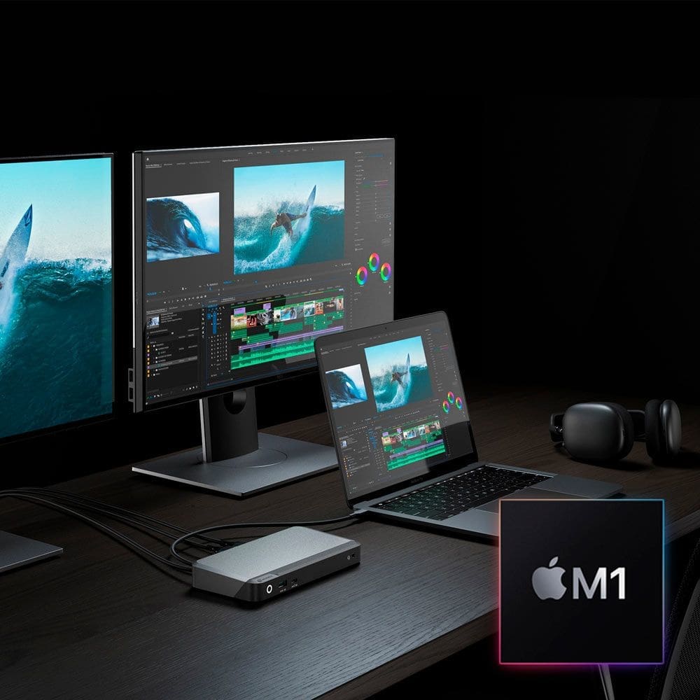 M1 Mac users can work on up to two screens when they plug into the DX2.
