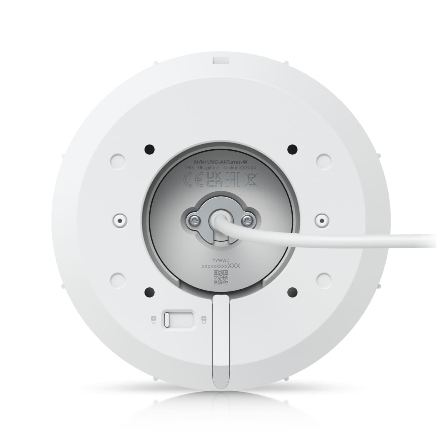 All-weather, vandal-proof 4K PoE+ turret camera with enhanced AI capabilities and IR and visible LEDs for night vision.
