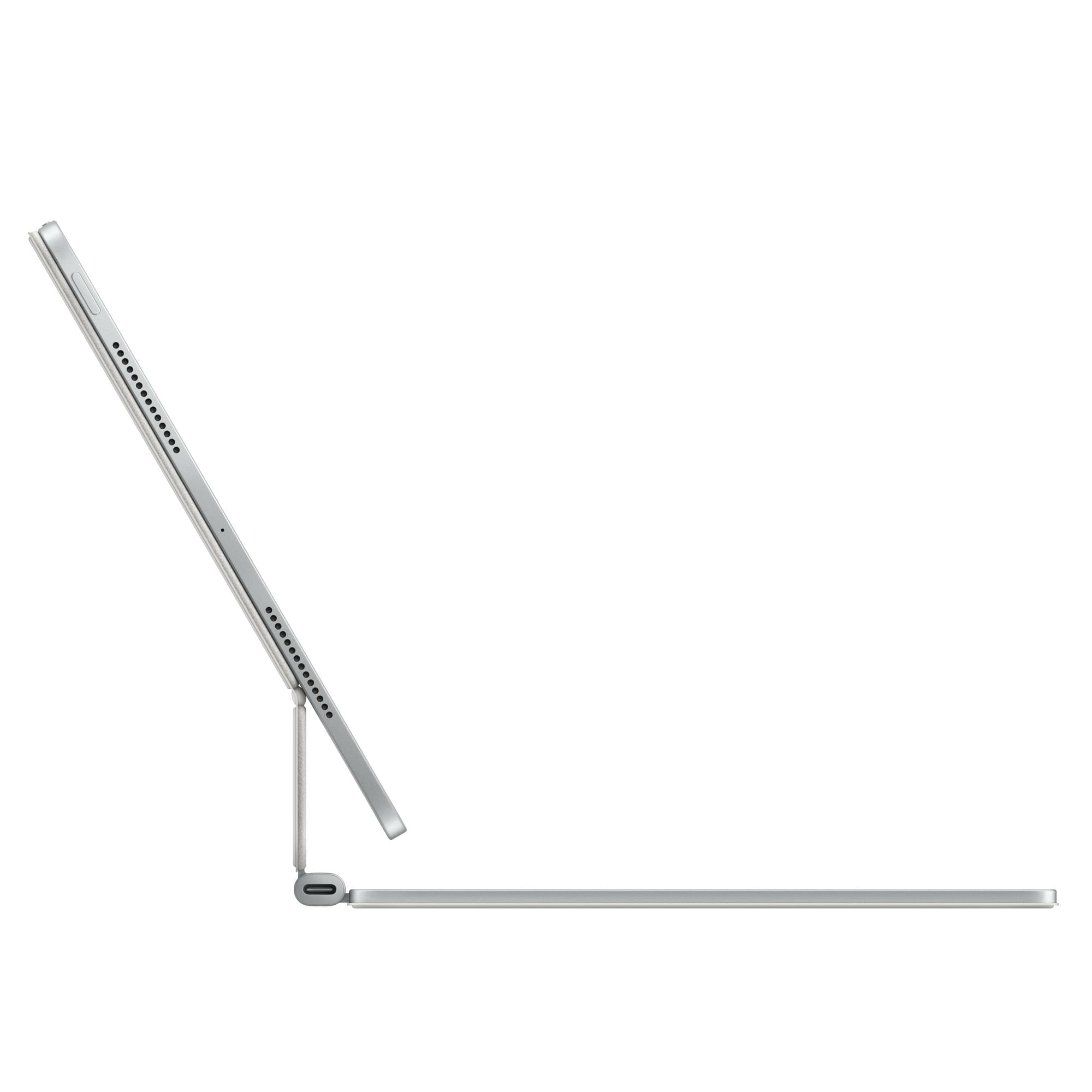 Magic Keyboard for iPad Pro delivers an amazing typing and trackpad experience in a sleek, portable new design with an aluminum palm rest. The keyboard includes a 14-key function row for quick access to screen brightness, volume controls, and other features, and a USB‑C connector for pass-through charging. The floating cantilever design smoothly adjusts to multiple viewing angles.