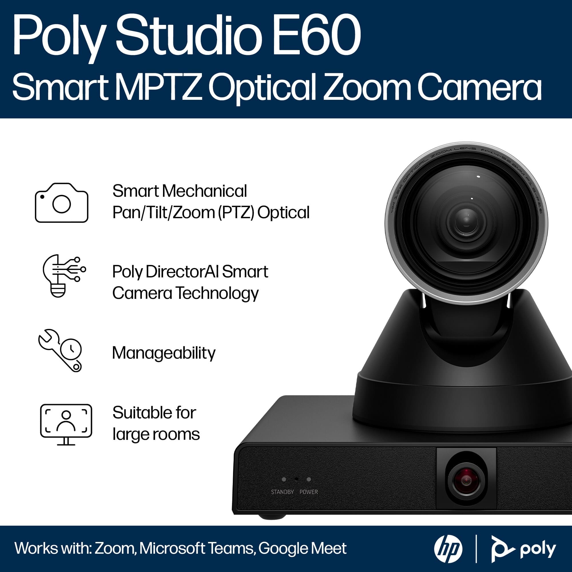 Poly Studio E60 Smart Camera 4K MPTZ with 12x Optical Zoom